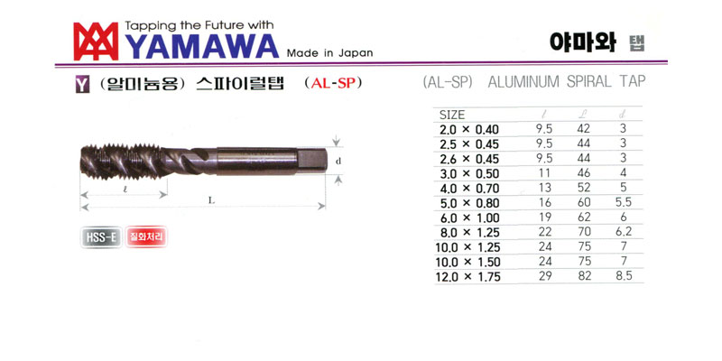 ¾Ë·ç¹Ì´½ AL-SP M10.0 * 1.25 YAMAWA 21,500¿ø   EA