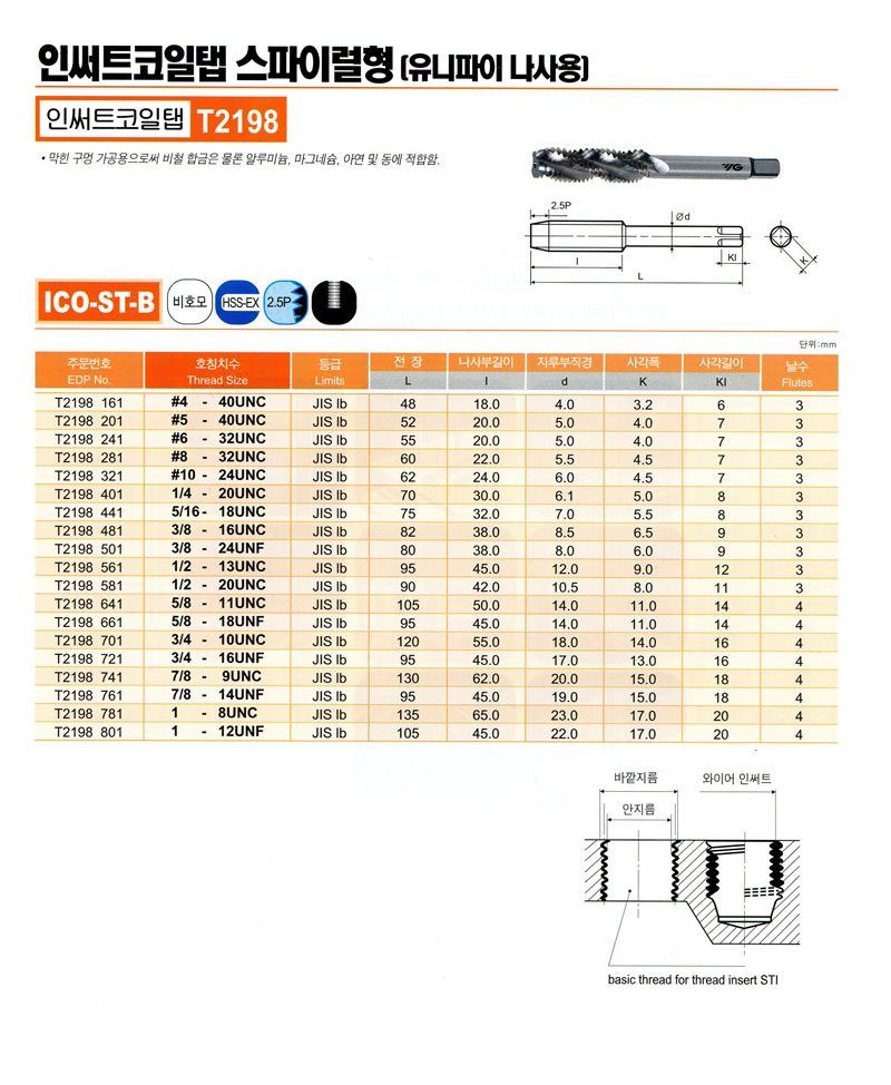 ½ºÆÄÀÌ·² (À¯´ÏÆÄÀÌ ³ª»ç¿ë) T2198 481 (3/8 - 16 UNC) YG-1 14,670¿ø