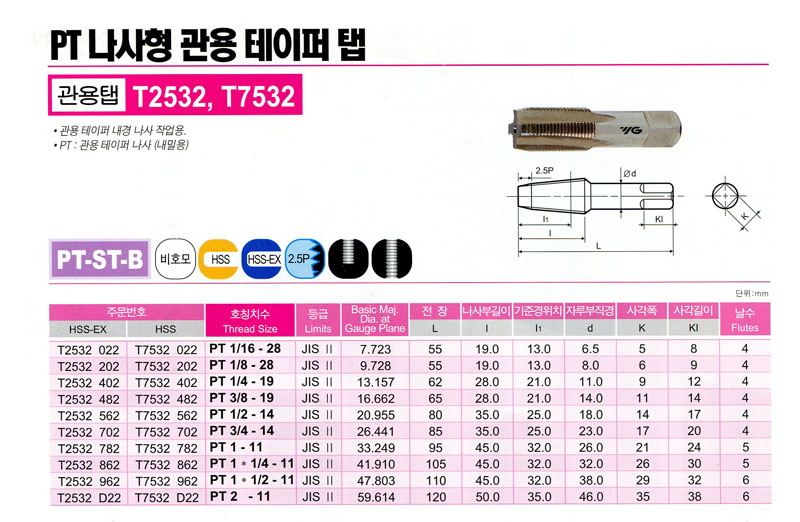 ÇÚµå °ü¿ëÅÇ(PT) T2532 022-HSS EX (PT 1/16 - 28) YG-1 12,400¿ø