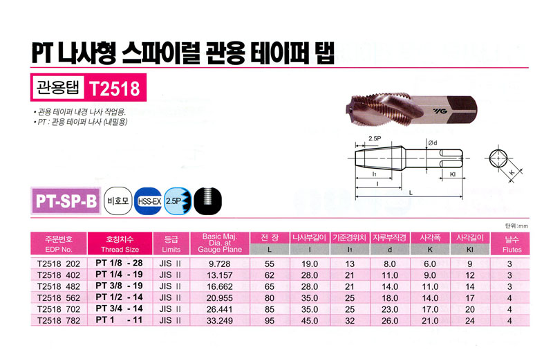 ½ºÆÄÀÌ·² °ü¿ëÅÇ(PT) T2518 482 (PT 3/8 - 19) YG-1 10,000¿ø