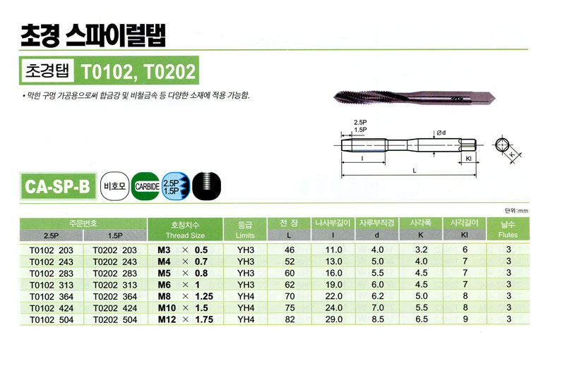 ÃÊ°æ ½ºÆÄÀÌ·²ÅÇ T0202 504 (M12 * 1.75) YG-1 122,540¿ø