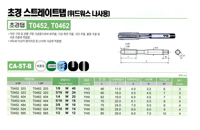 Ãʰæ À§µå¿ö½º ³ª»ç¿ë T0452 444 (5/16 W 18) YG-1 69,190¿ø