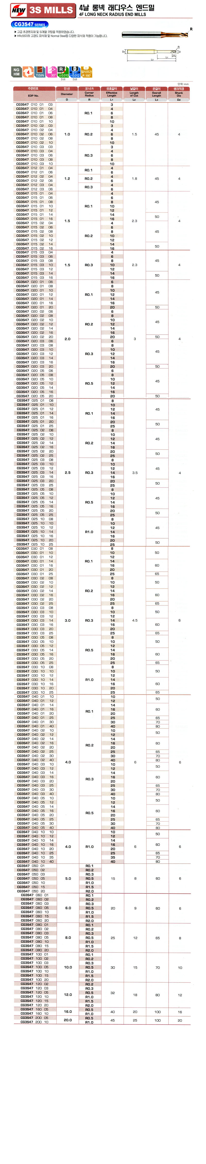 3S MILLS 4³¯ ·Õ³Ø ·¡µð¿ì½º ¿£µå¹Ð CG3S47 040 10 14 (4.0*R1.0*14*6.0*60L) NEW CENTURY 18,720¿ø