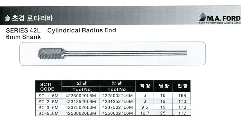 6mm shank-Long shank (SC-LM) SC-1L6M (6*16*168L) M.A. FORD 13,200¿ø   EA