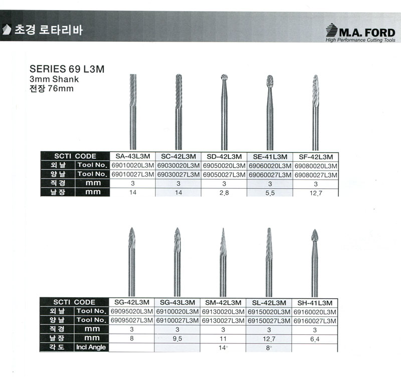 3mm shank*3mm Á÷°æ(Long Type) SM-42L3M (3*11*14µµ*76L) M.A. FORD(U.S.A) 9,800¿ø   EA