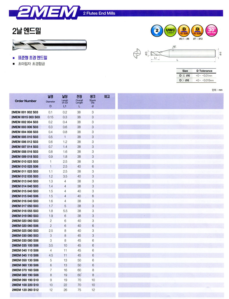 2³¯ ¿£µå¹Ð 2MEM 030 080 S06 (3.0*8.0*45L) 7,520¿øºÎÅÍ~ÀåÁø°ø±¸ 8,610¿ø   EA