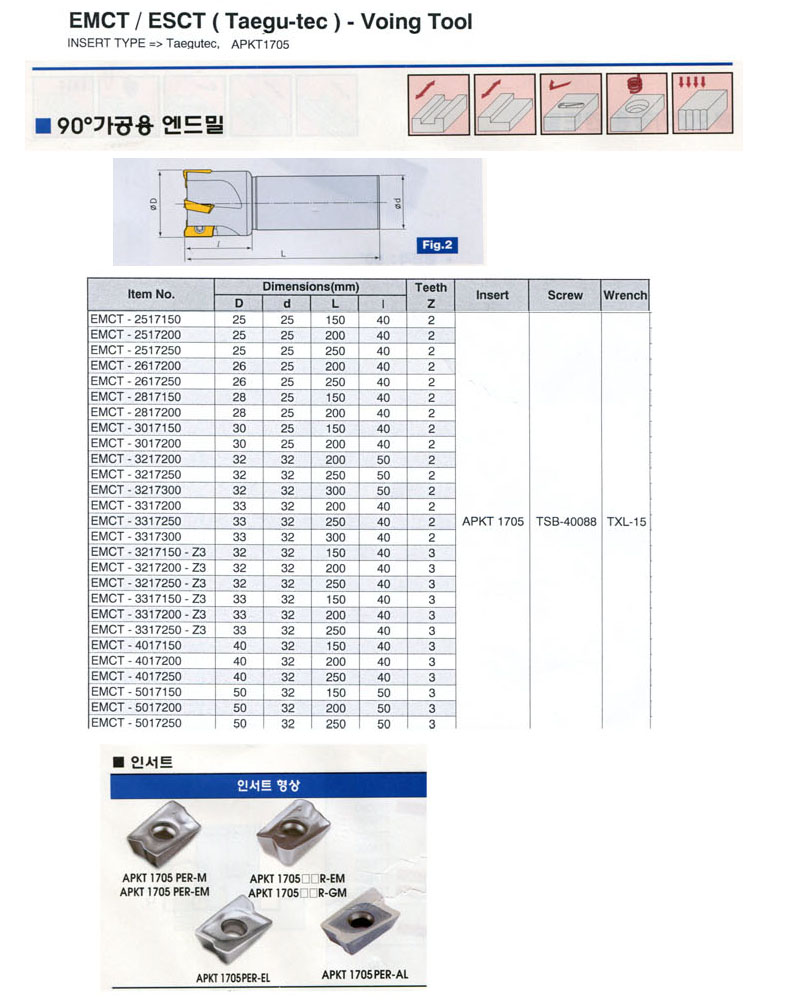EMCT (APKT-1705) EMCT-5017250-Z3 (D50*L250 3F) VOING TOOL 74,000¿ø   EA