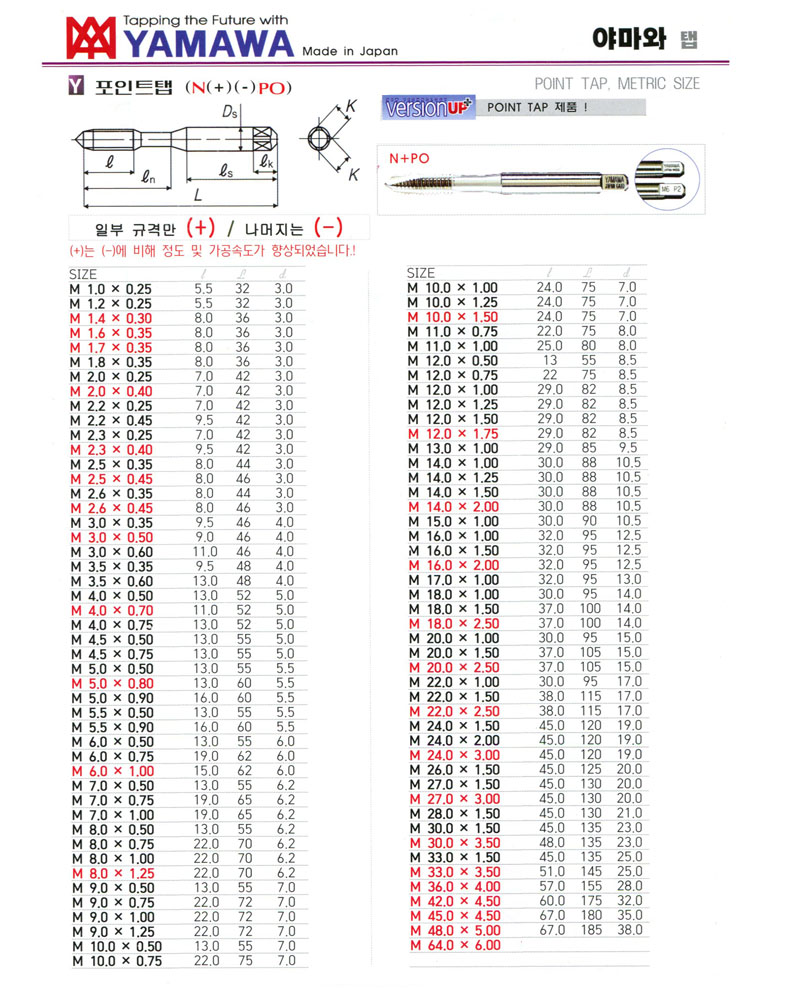 ÀϹݿë N-POT M 10.0 * 1.25 YAMAWA 17,900¿ø   EA