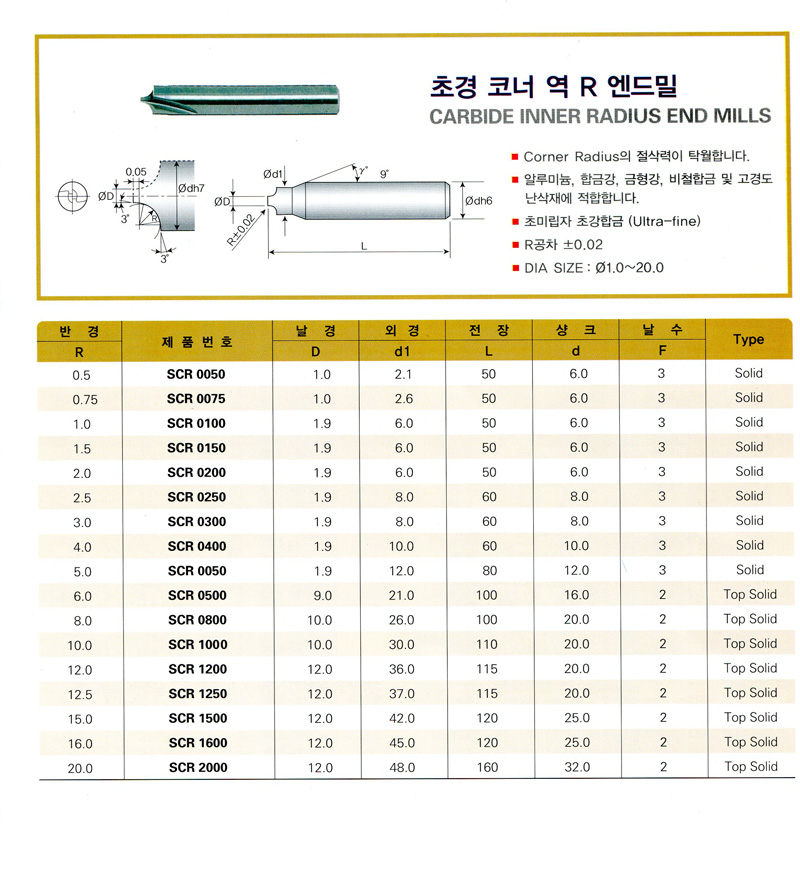 Ãʰæ ÄÚ³Ê ¿ªR ¿£µå¹Ð SCR0050 (R0.5*1.0*2.1*50L) ½Å±â¹ÌÅ©·Ð 24,000¿ø   EA