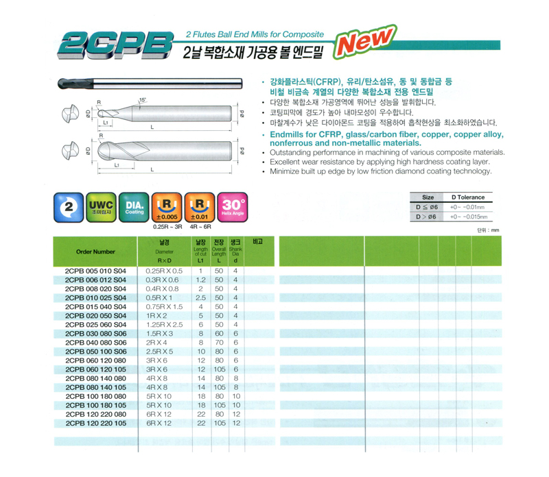 2³¯ º¹ÇÕ¼ÒÀç °¡°ø¿ë º¼ ¿£µå¹Ð 2CPB-030 080 S06 (R1.5*8.0*60L d6) ÀåÁø°ø±¸ 40,530¿ø