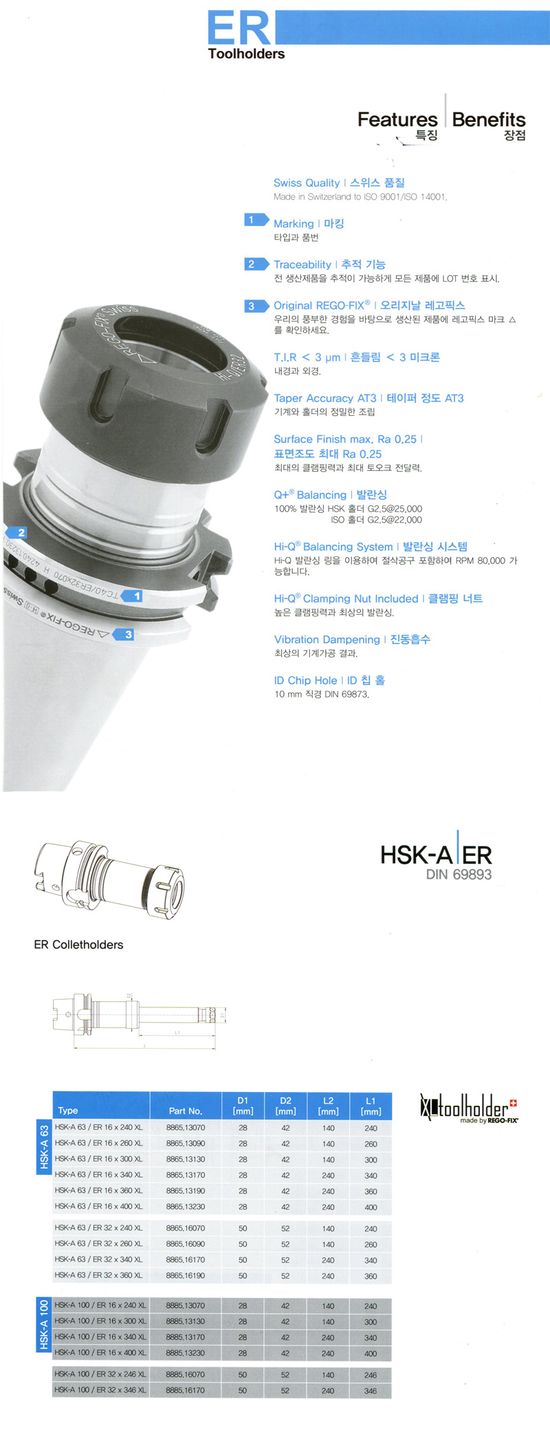 ER ·Õ ô - HSK-A HSK-A63 / ER16*240XL REGO-FIX(½ºÀ§½º) 0¿ø   EA