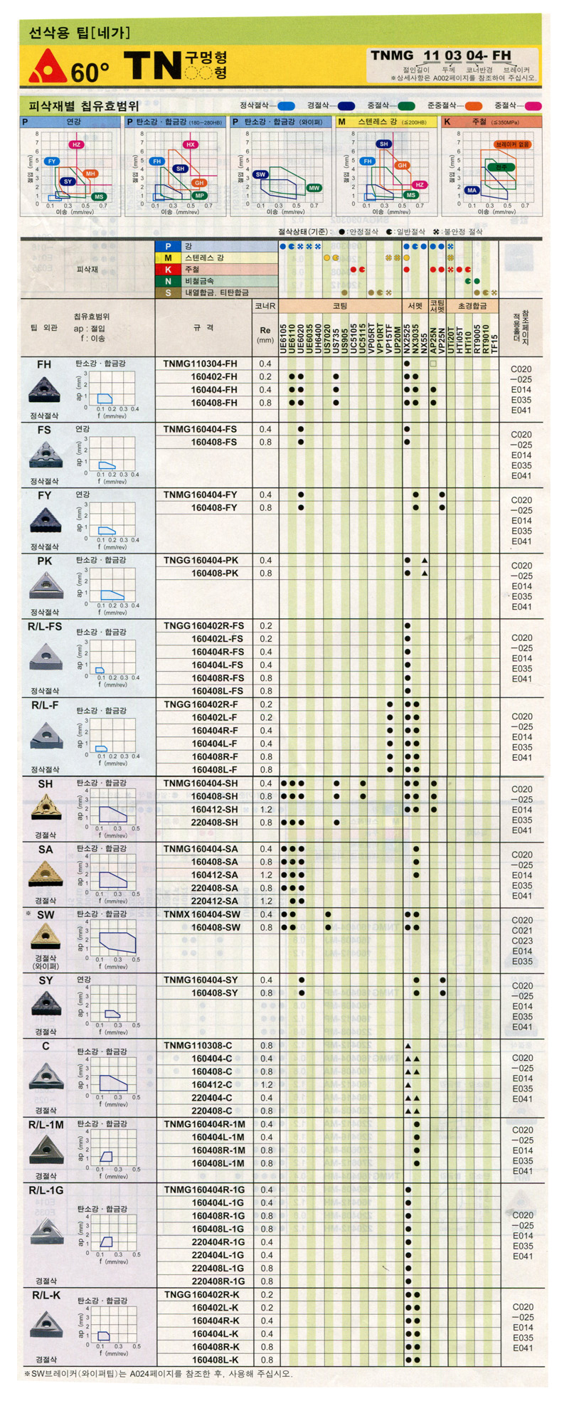 TNoo Á¤»ï°¢Çü 60¢ª - FH TNMG 110304-FH UE6110 ¹ÌÂêºñ½Ã 0¿ø ÀüÈ­¹®ÀÇ   EA