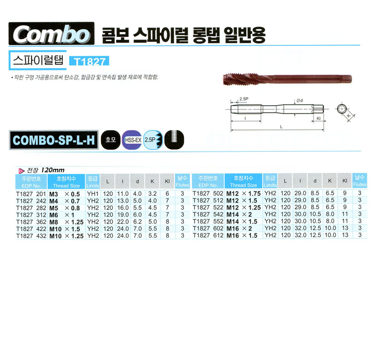 ÀϹݿë HSS-EX (È£¸ð - ÀüÀå120mm) T1827 502 (M12 * 1.75) YG-1 17,320¿ø
