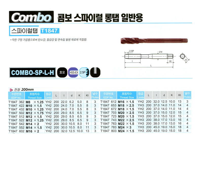 ÀϹݿë HSS-EX (È£¸ð - ÀüÀå200mm) T1847 362 (M8.0 * 1.25) YG-1 24,030¿ø   EA
