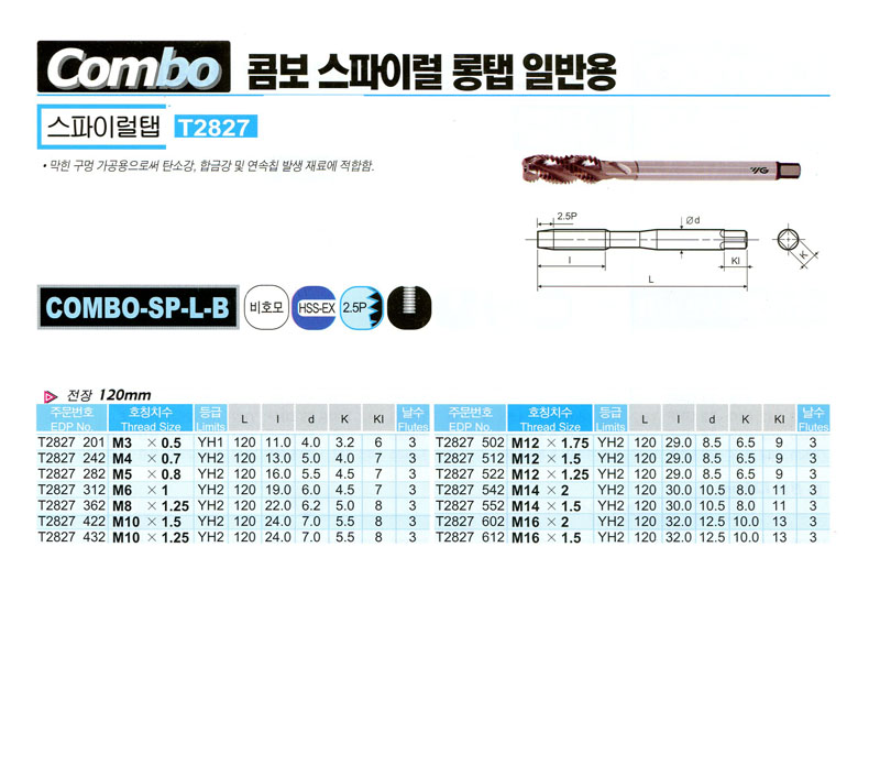 ÀϹݿë HSS-EX (ºñÈ£¸ð - ÀüÀå120mm) T2827 502 (M12 * 1.75) YG-1 16,540¿ø