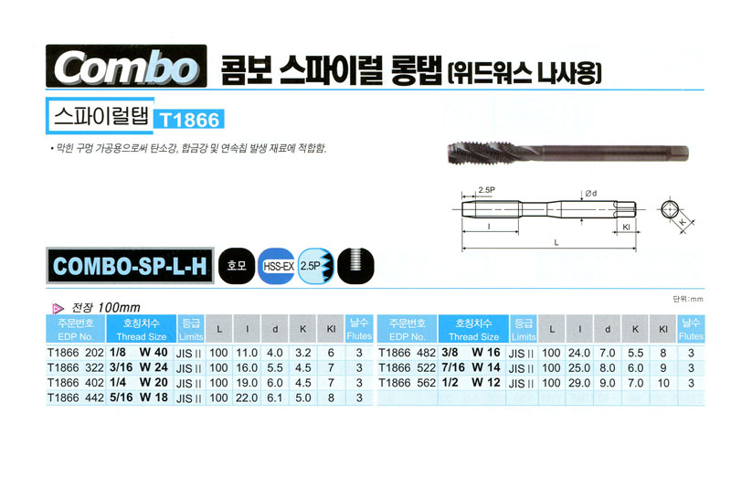 À§µå¿ö½º ³ª»ç¿ë (È£¸ð - ÀüÀå100mm) T1866 322 (3/16 W 24) YG-1 10,840¿ø