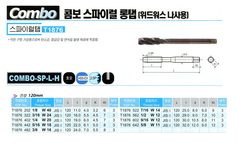 À§µå¿ö½º ³ª»ç¿ë (È£¸ð - ÀüÀå120mm) T1876 322 (3/16 W 24) YG-1 14,280¿ø