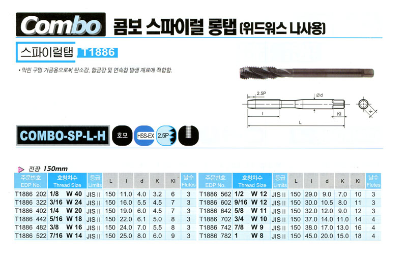 À§µå¿ö½º ³ª»ç¿ë (È£¸ð - ÀüÀå150mm) T1886 322 (3/16 W 24) YG-1 18,720¿ø