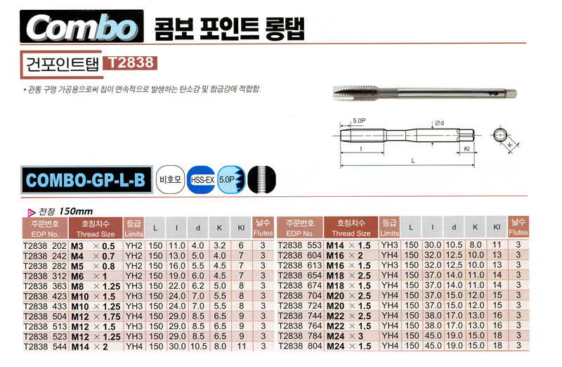ÀϹݿë HSS-EX (ºñÈ£¸ð - ÀüÀå150mm) T2838 604 (M16 * 2.00) YG-1 28,320¿ø