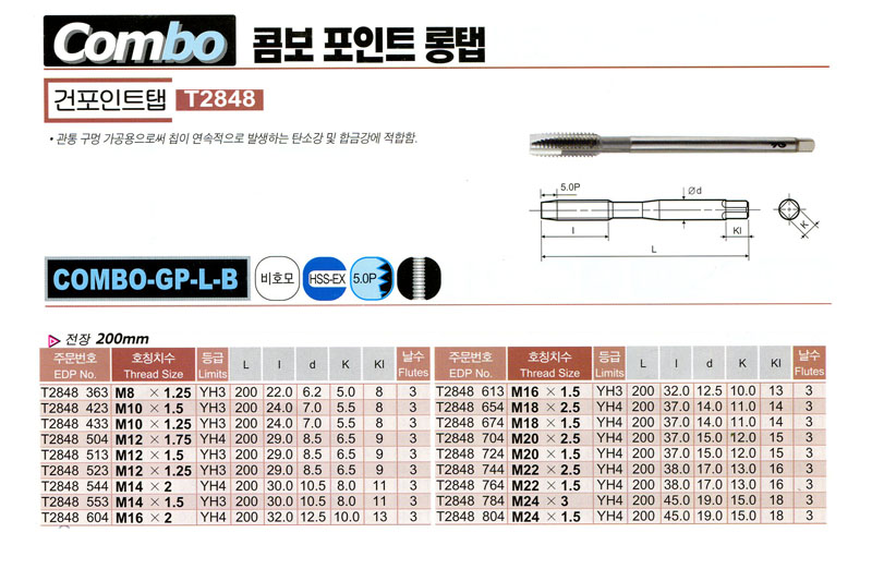 ÀϹݿë HSS-EX (ºñÈ£¸ð - ÀüÀå200mm) T2848 504 (M12 * 1.75) YG-1 31,830¿ø