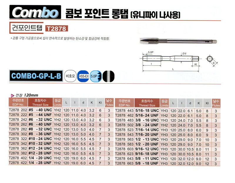 À¯´ÏÆÄÀÌ ³ª»ç¿ë HSS-EX (ºñÈ£¸ð - ÀüÀå120mm) T2878 362 (#12 - 24 UNC) YG-1 11,310¿ø