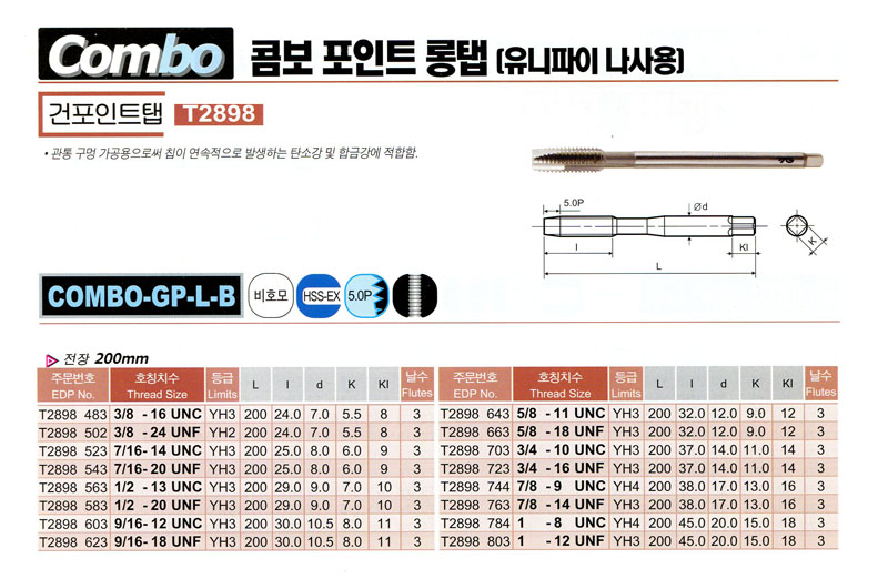 À¯´ÏÆÄÀÌ ³ª»ç¿ë HSS-EX (ºñÈ£¸ð - ÀüÀå200mm) T2898 784 (1 - 8 UNC) YG-1 115,830¿ø