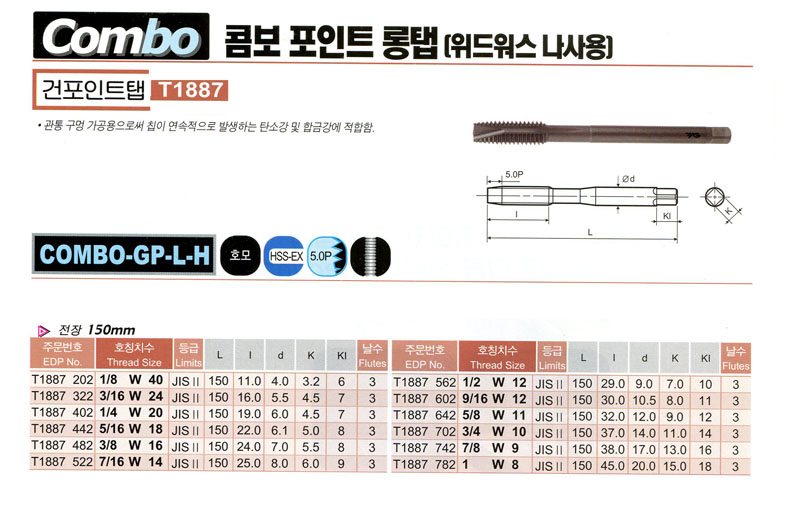 À§µå¿ö½º ³ª»ç¿ë HSS-EX (È£¸ð - ÀüÀå150mm) T1887 602 (9/16 W 12) YG-1 33,150¿ø