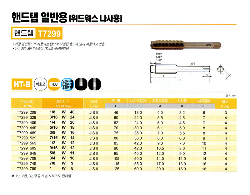 À§µå¿ö½º ³ª»ç¿ë HSS (ºñÈ£¸ð) T7299 749 (7/8 W 9) YG-1 144,460¿ø