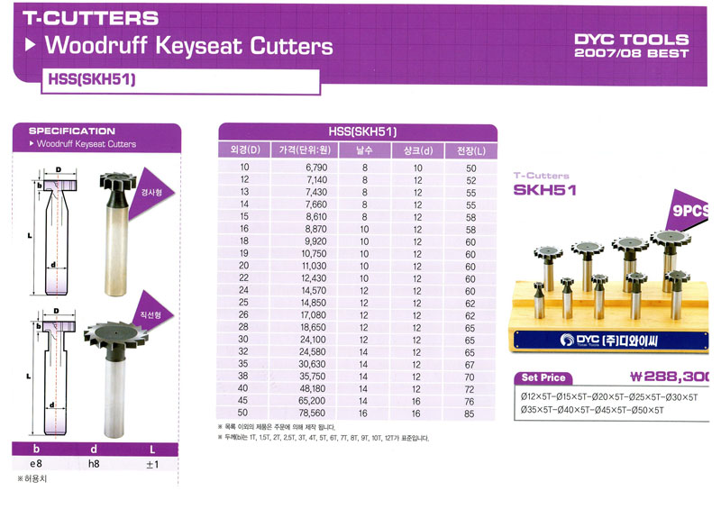 HSS T-CUTTER 12.0*8F*D12*52L DYC 8,700¿ø   EA