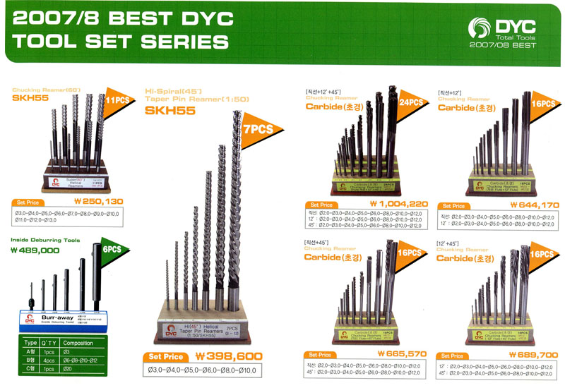 ¸®¸Ó SET Carbide(Ãʰæ Chucking ReamerÁ÷¼±+45¢ª) 16 PCS DYC 621,000¿ø