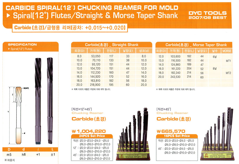 Ãʰ渮¸Ó(±ÝÇü¿ë) 8.0*33*117L [Straight Shank] DYC 58,000¿ø   EA