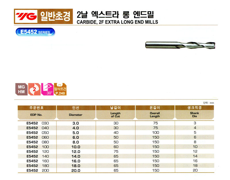 ÀϹÝÃʰæ 2³¯ ¿¢½ºÆ®¶ó ·Õ ¿£µå¹Ð E5452 030 (3.0*30) YG-1 17,500¿ø   EA