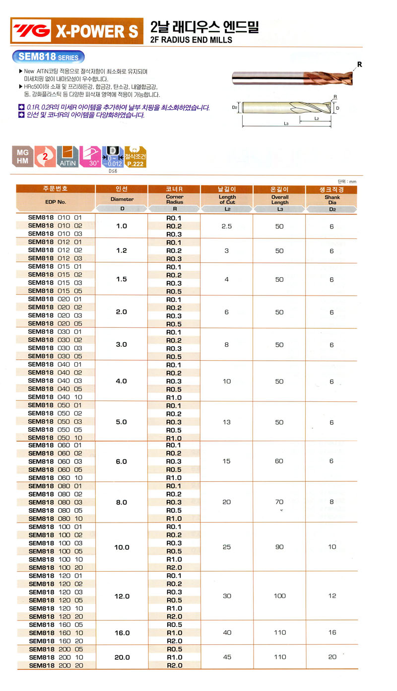 SEM818 060 02 (6.0*R0.2*15*60L) |