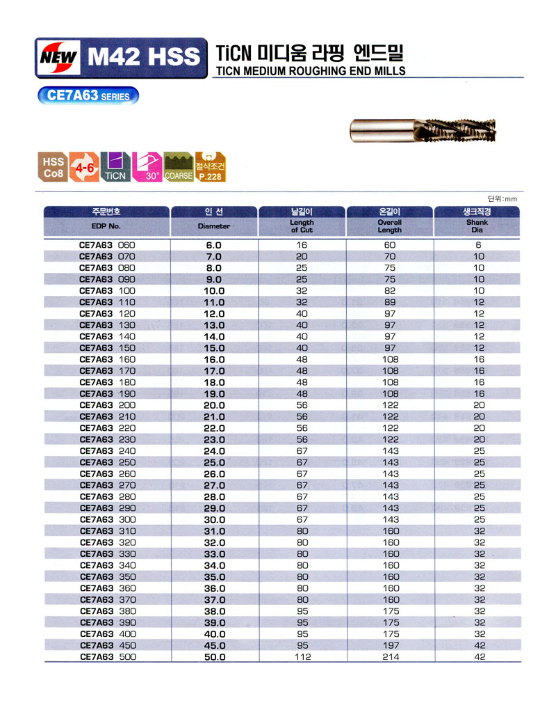 M42 HSS TICN ¹Ìµð¿ò ¶óÇÎ ¿£µå¹Ð CE7A63 060 (6.0*16*60L) NEW CENTURY 10,940¿ø