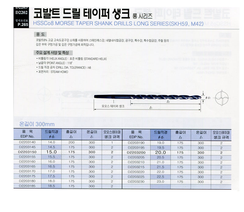 ÄÚ¹ßÆ® Å×ÀÌÆÛ »ýÅ© ·Õµå¸±-ÀüÀå300mm D2203190 (19.0*175*300L) YG-1 0¿ø º°µµ°ßÀû