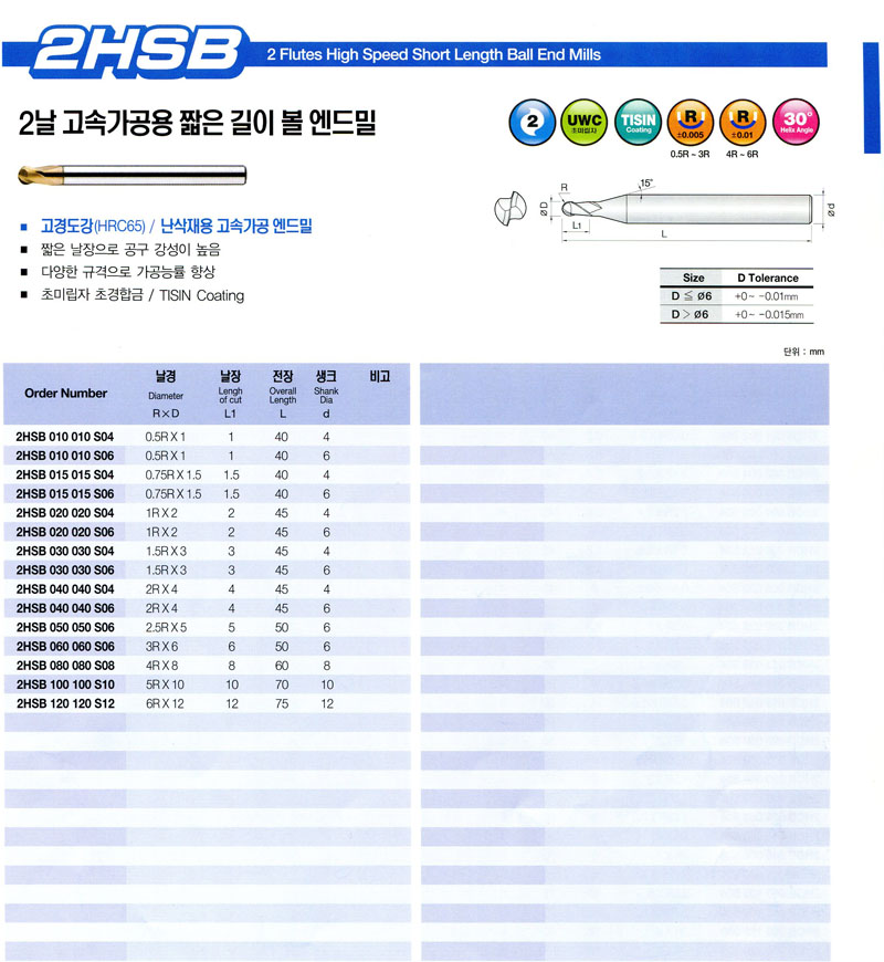 2³¯ °í¼Ó°¡°ø¿ë ªÀº±æÀÌ º¼ ¿£µå¹Ð 2HSB 030 030 S04 (1.5R*3.0*45L) 11,540¿øºÎÅÍ~ÀåÁø°ø±¸ 11,540¿ø   EA