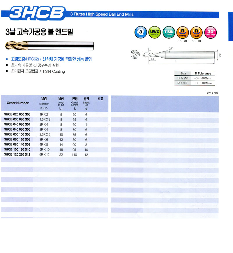 3³¯ °í¼Ó°¡°ø¿ë º¼ ¿£µå¹Ð 3HCB 060 120 S06 (3.0R*12*80L) 18,300¿øºÎÅÍ~ÀåÁø°ø±¸ 20,270¿ø   EA