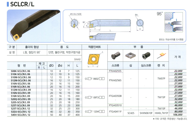º¸¸µ¹Ù (SCLCR) S16R-SCLCR 09 14300¿ø~METALLIX 18,000¿ø   EA