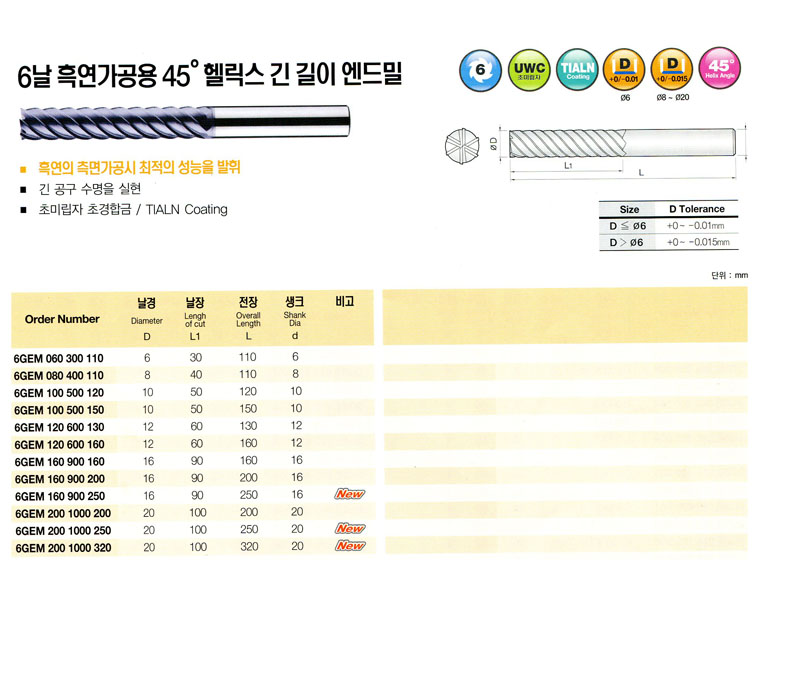 6³¯ Èæ¿¬°¡°ø¿ë 45¢ª Ç︯½º ±ä±æÀÌ ¿£µå¹Ð 6GEM 060 300 110 (6.0*30*110L) ÀåÁø°ø±¸ 36,300¿ø   EA